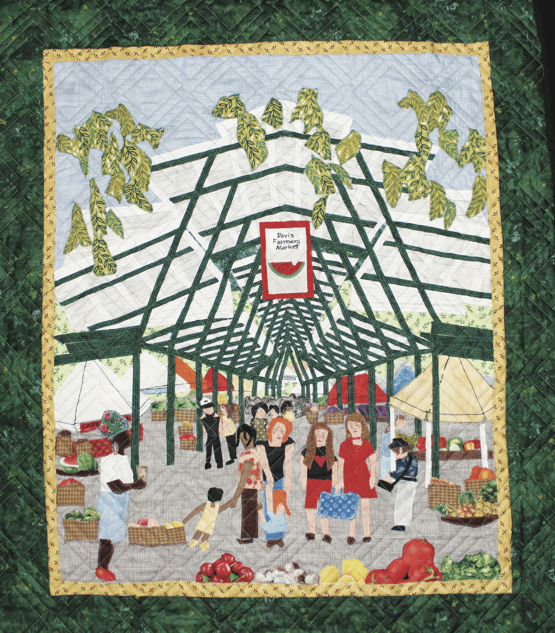 The quilts recreate classic Davis landmarks from the Farmers Market, to the Arboretum, to the Compassion Bench on the corner of 3rd and C.