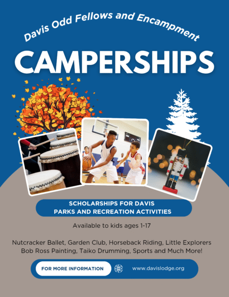 Meeting Davis families where they are, the Davis Odd Fellows have expanded their never-ending (we’re serious) Encampment Scholarship Program. New this year, families can now apply for scholarships to participate in the Davis Children’s Nutcracker, Fall Trekkers, Horse Riding, Garden Club, and so much more.