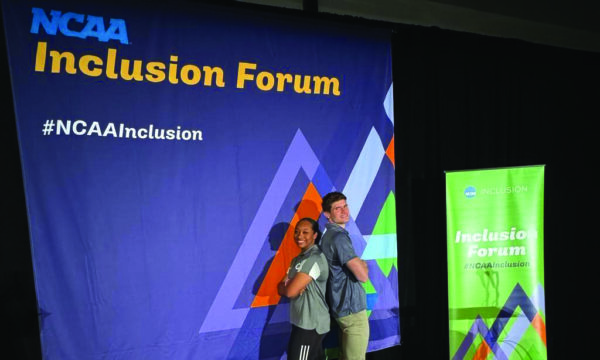 Aggie basketball players Bria Shine and Niko Rocak participated in the NCAA Inclusion Forum held in Indianapolis in April. (UC Davis Athletics photo)