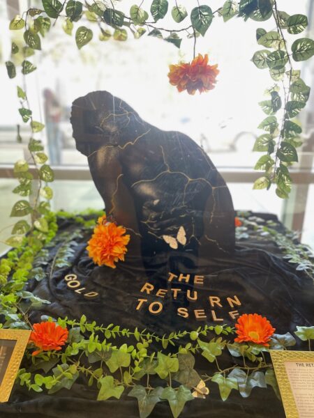 “This exhibit was curated with intention and deep respect for the courage of survivors,” says NJ Mvondo, curator and founder of the Interactive Healing Arts Project. “Art is more than a product made for our entertainment or consumption. Art makes space for unveiling but also truth-telling, for grieving but also for comfort, and for collective healing, organizing, and mutual accountability.”