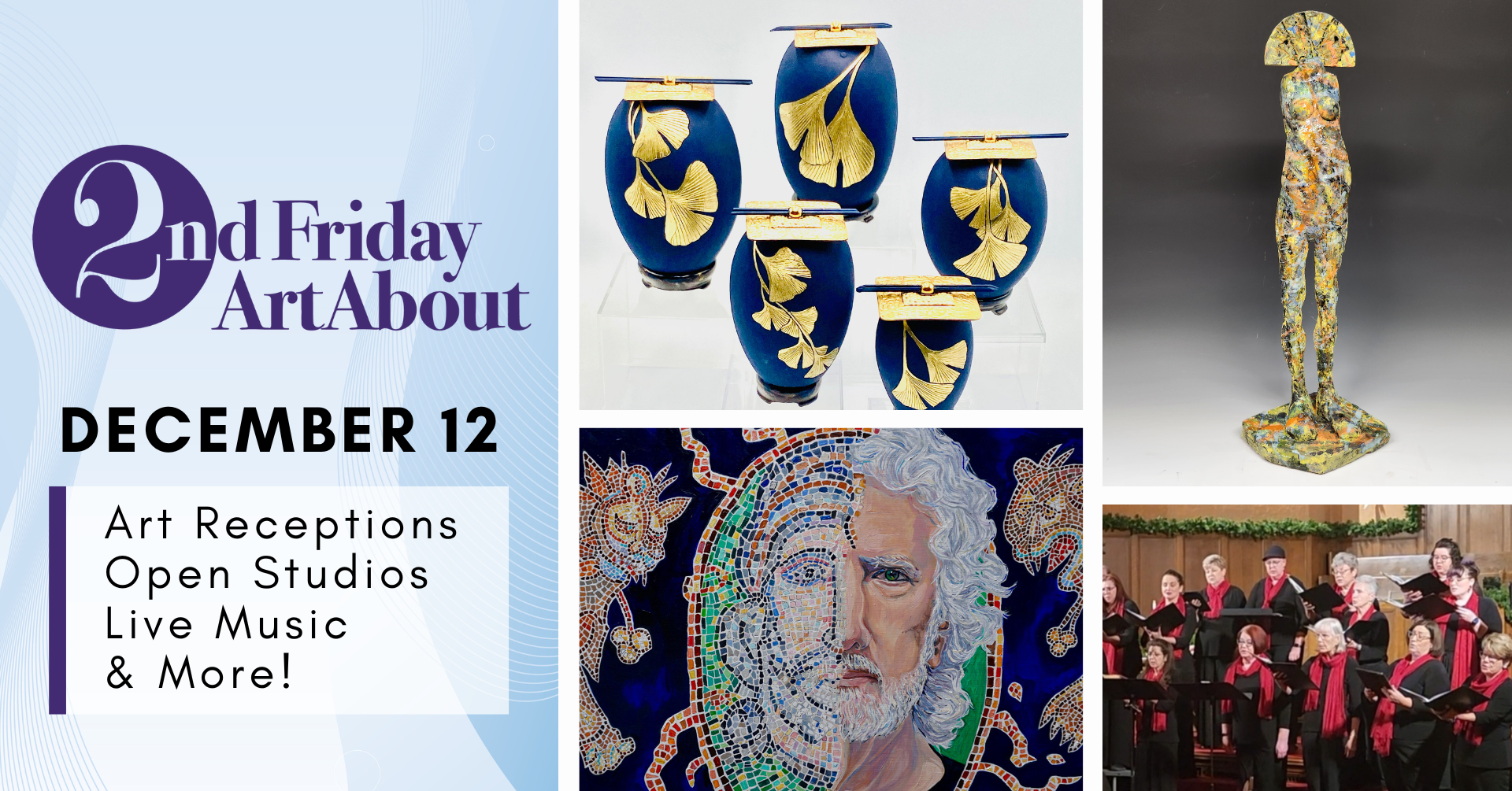 Discover the gift of art during the last 2nd Friday ArtAbout artwalk of 2025! Check out art receptions, pop-ups, open studios, live music, and more in Downtown Davis & beyond the evening of December 12. This is a great free event to enjoy with friends and family each month. Participating venues: