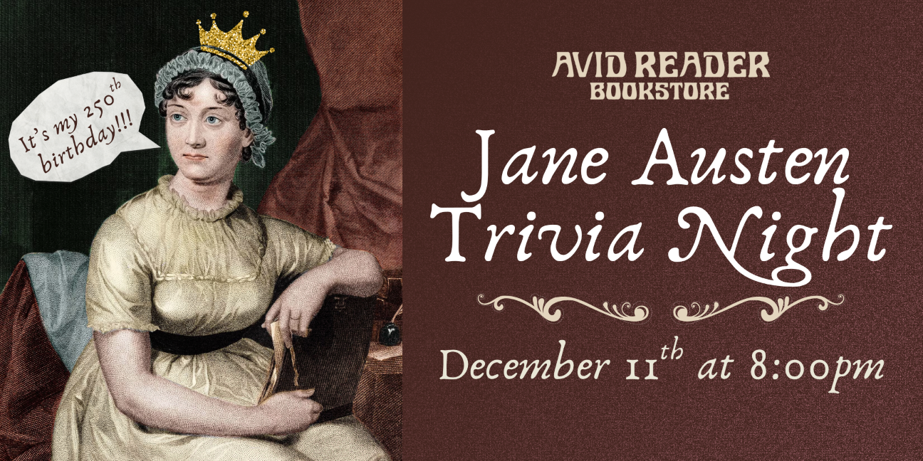Join us for Jane Austen themed trivia at Avid Reader on December 11th at 8:00PM Get tickets here!