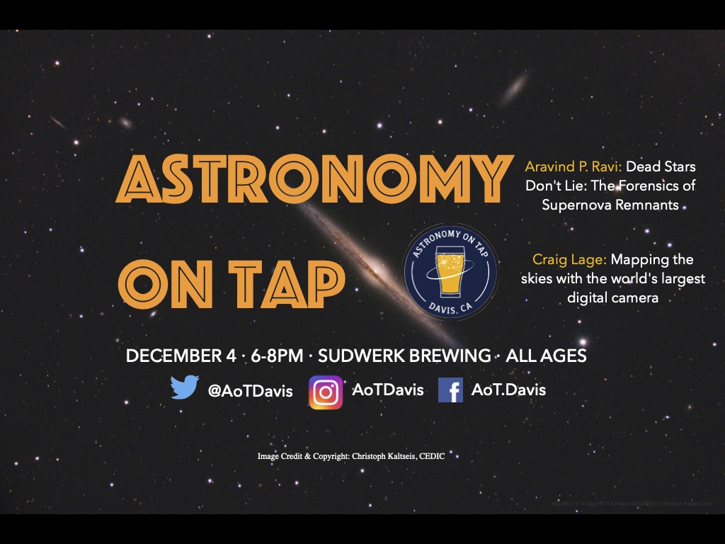 SUDWERK BREWING CO. Astronomy on Tap in Davis is back! We will have two talks from members of the UC Davis Physics & Astronomy department. 6p—8p. Free