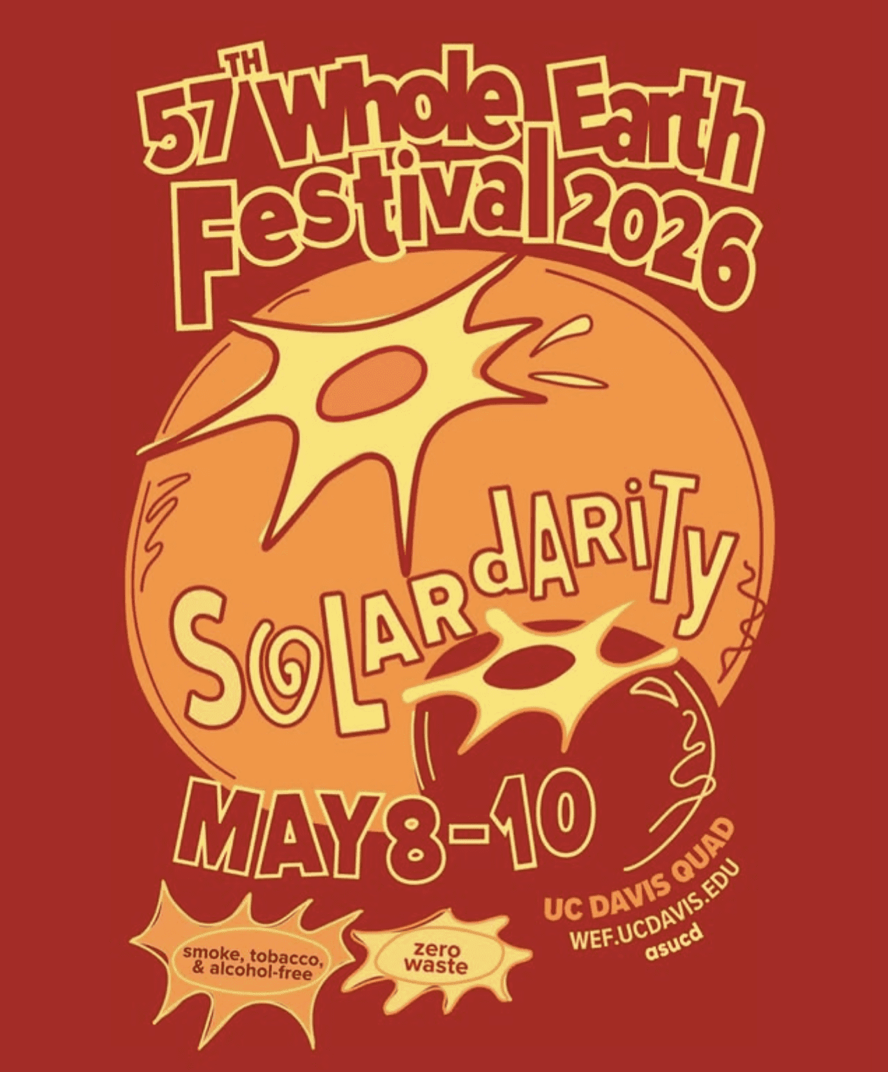 UC DAVIS QUAD. The Whole Earth Festival is a family-friendly, zero-waste event. Learn about environmental sustainability while celebrating with art & live music. Fri. 12p—10p, Sat. 10a—10p, and Sun. 10a—6p. Free