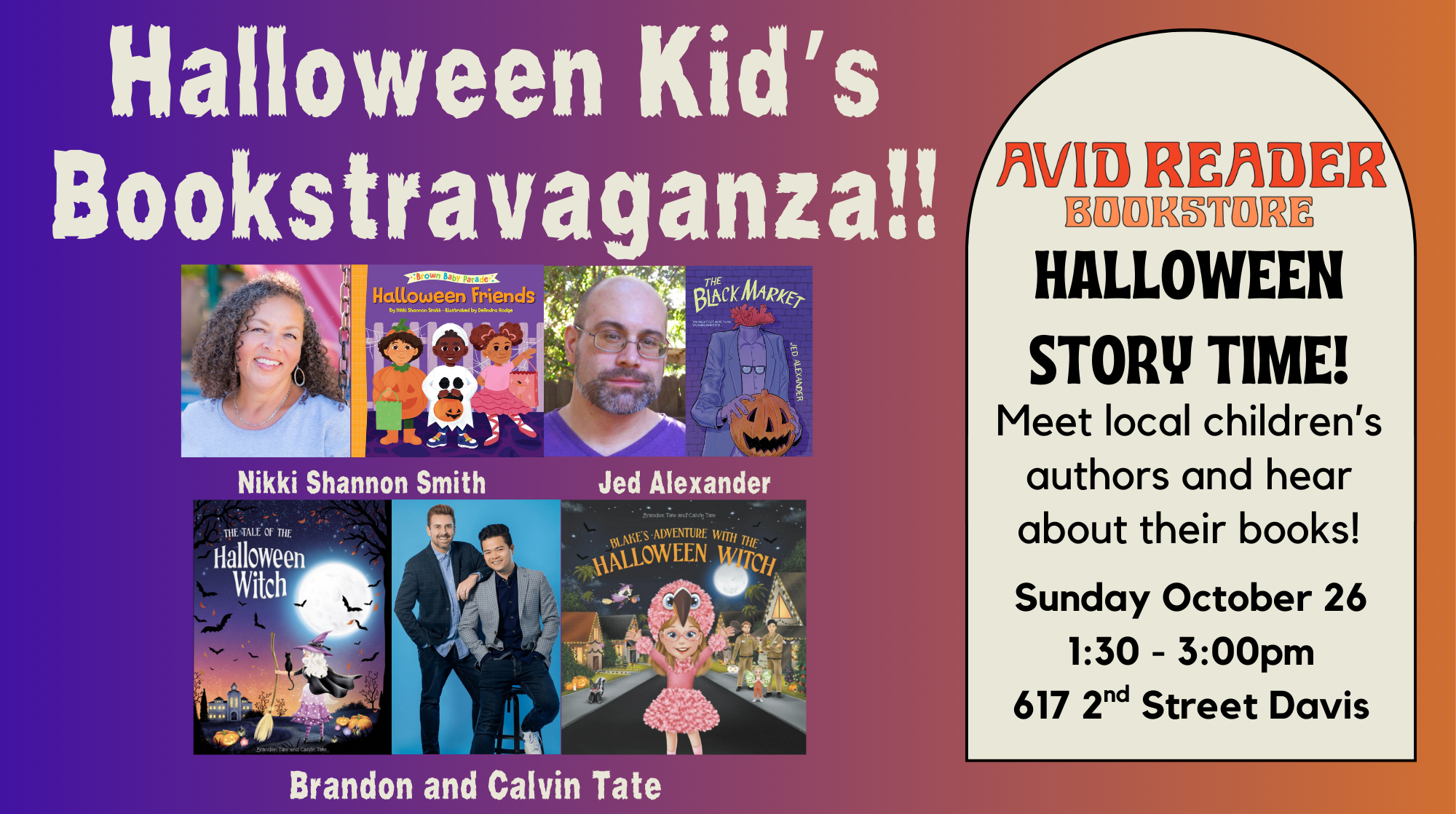 THE AVID READER. Come celebrate Halloween kids books by local authors! We will be joined by Nikki Shannon Smith, author of "Halloween Friends," Jed Alexander, author of "The Black Market," as well as Brandon and Calvin Tate, authors of "The Tale of the Halloween Witch." 1:30p—3p. Free