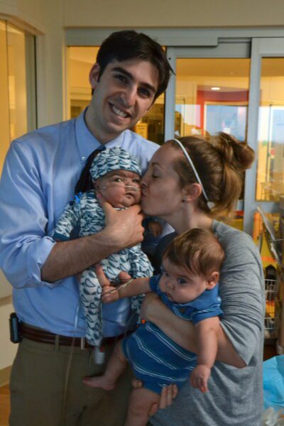 “But everything changed when Micah was diagnosed with necrotizing enterocolitis. He became critically ill and needed emergency surgery to remove necrotic bowel,” Jennifer explained. “Zachary was discharged from the NICU, but Micah’s complications from NEC continued.”
