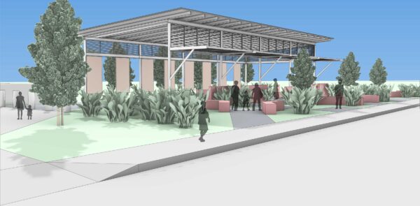 The Tupelo Affordable Housing Development will provide 73 new units, a mix of one-, two- and three-bedroom apartments that serve families earning between 30% and 60% of area median income. Construction is anticipated to begin in 2027, with residents moving in by 2029. The design incorporates dedicated infrastructure for both outdoor and indoor services. The outdoor space is designed to accommodate mobile service providers, including a shaded area designed to maintain appropriate